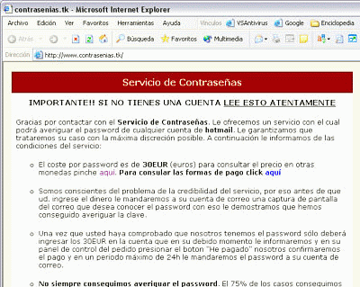 Según todavía se puede leer en su página, el joven ofrecía de forma directa "un servicio con el cual podrá averiguar el password de cualquier cuenta de Hotmail."