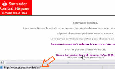 Un nuevo phishing ha sido detectado recientemente en Internet, esta vez afectando a los usuarios del grupo Banco Santander Central Hispano de España.