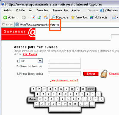 De todos modos, y hablando de la técnica usada (la registración de un dominio y de un host), lo curioso es que el dominio gruposantanders.es haya sido aceptado, debido a su similitud a la del sitio original.