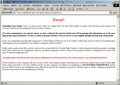 El sitio a que hace referencia el mensaje, pertenece a un dominio registrado en FREESERVERS, algo extraño para un banco (Freeservers ofrece host gratuito o a un precio económico).