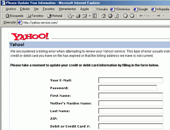 Falso correo de Yahoo roba datos de tarjetas de crédito