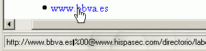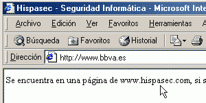 Entonces, si en el IE se pasa el cursor sobre el URL mostrado (www.bbva.es), en la barra de estado (abajo), es visible solo dicha dirección, y no la verdadera (www.hispasec.com/[etc.]...).